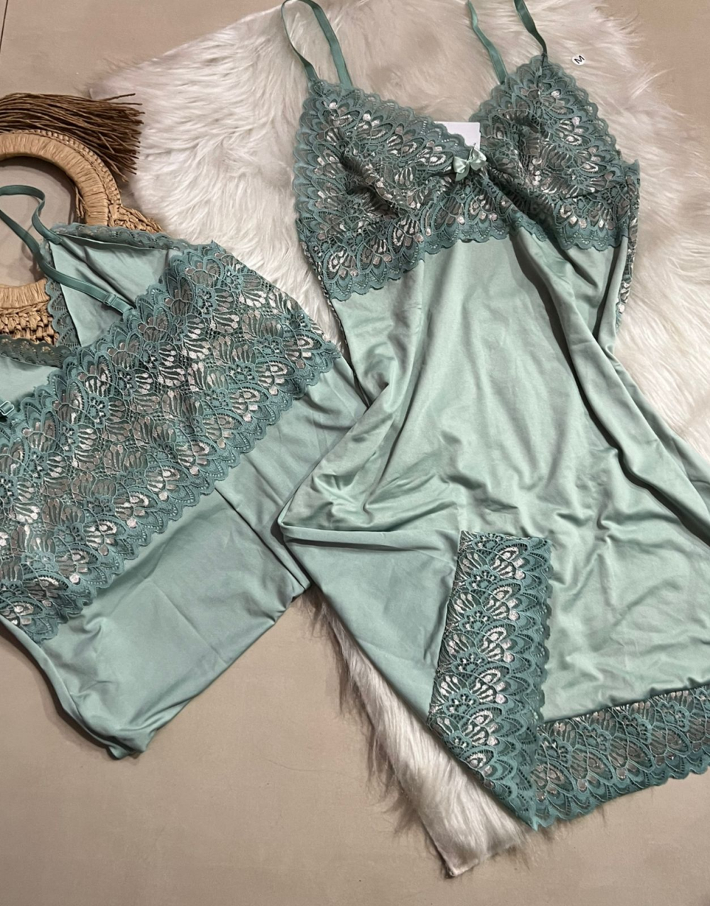 Camisola em Microfibra com renda. Possui regulagem na alça. Não acompanha calcinha