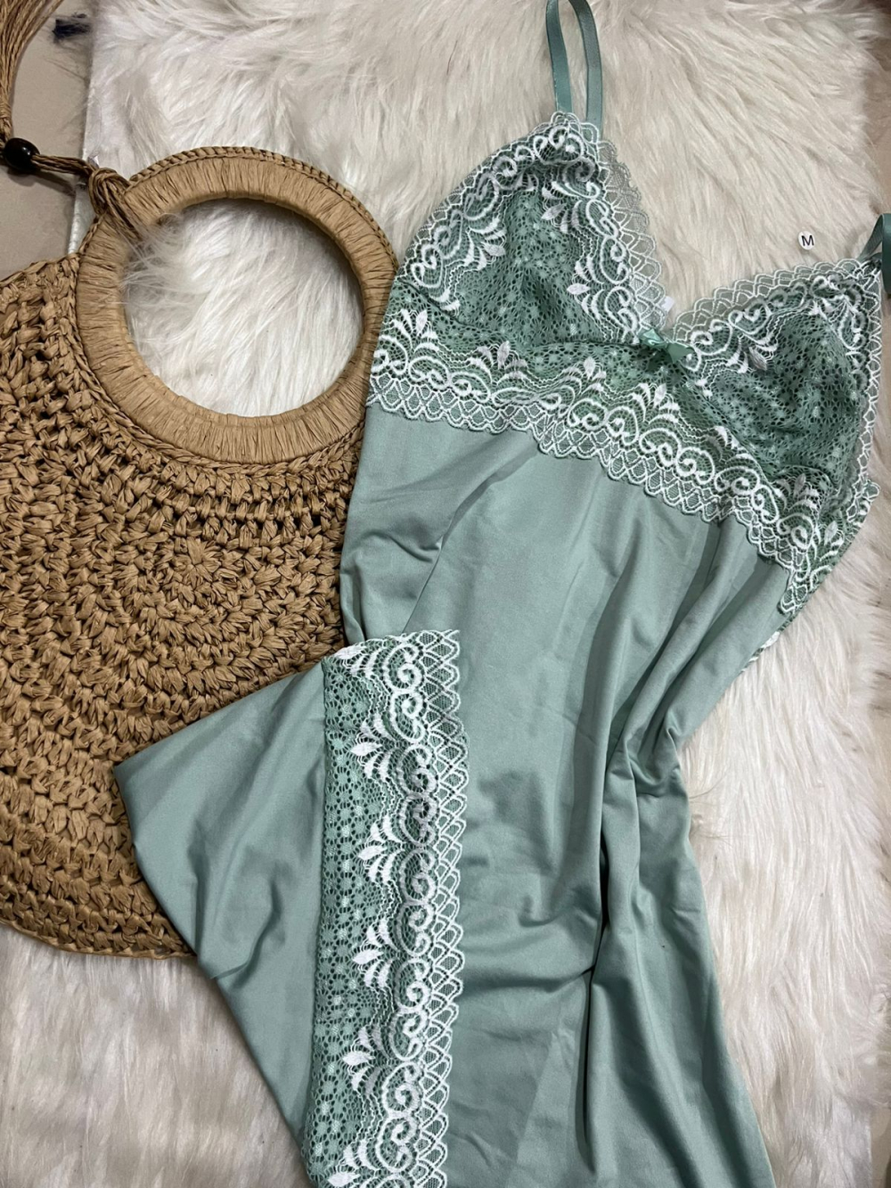 Camisola em Microfibra com renda. Possui regulagem na alça. Não acompanha calcinha