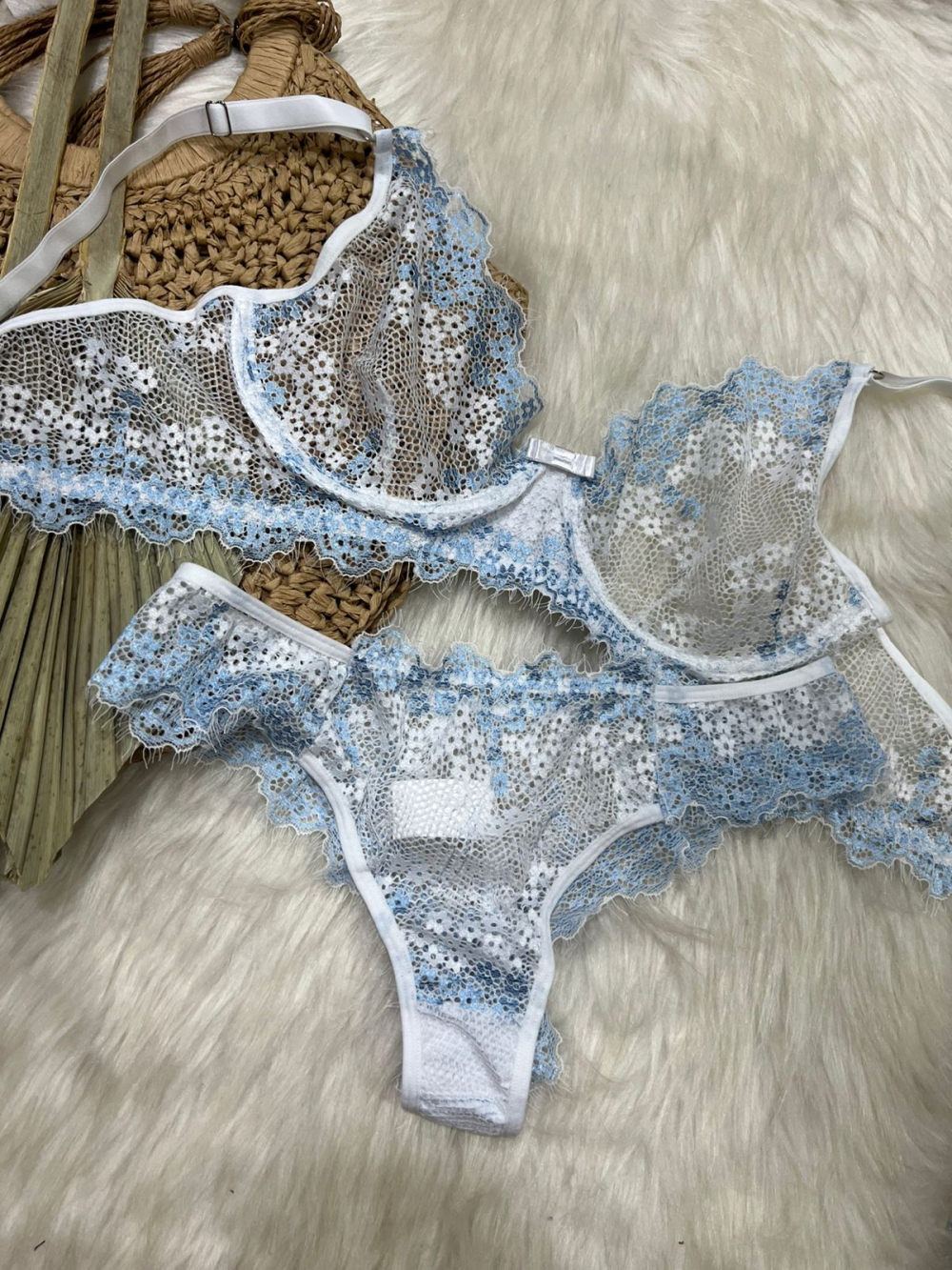 Conjunto com calcinha e sutiã sem bojo com aro.