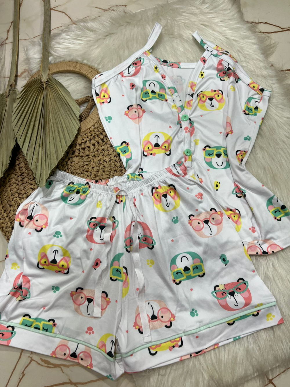 PIJAMA AMERICANO SUED COM ALÇA 000401 BRANCO URSO