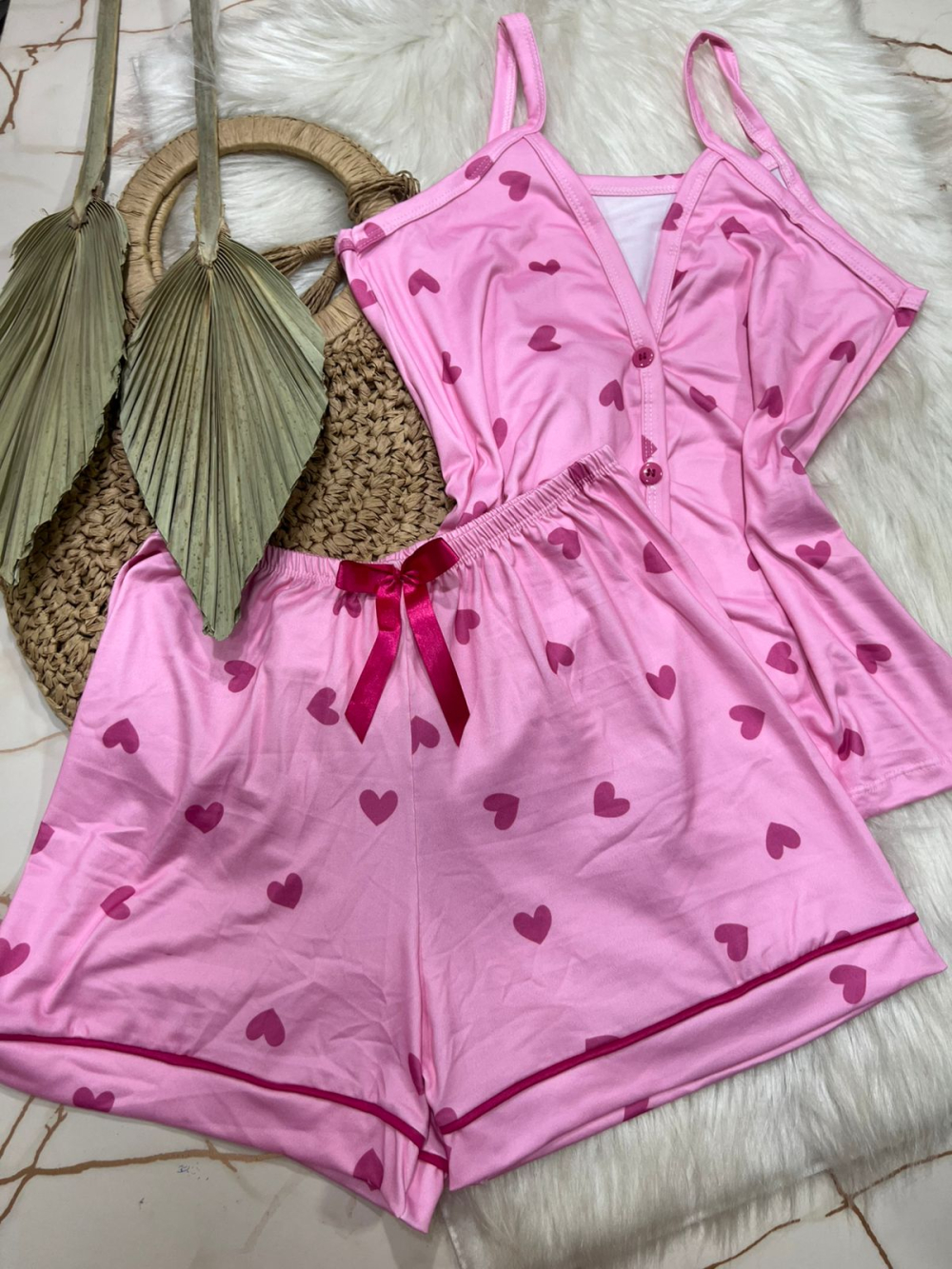 PIJAMA AMERICANO SUED COM ALÇA 000401 CORACAO ROSA
