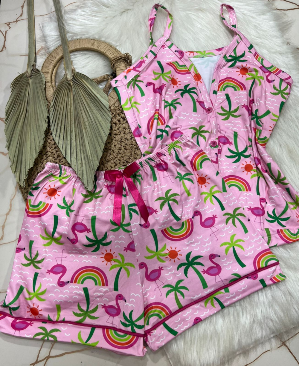 PIJAMA AMERICANO SUED COM ALÇA 000401 FLAMINGO