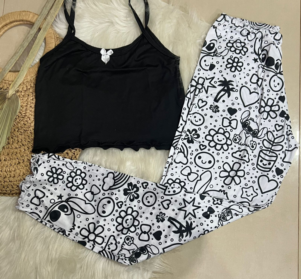 Pijama de ondinha, pijama da Virgínia, tecido de sued,