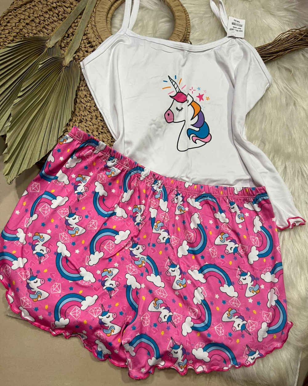 PIJAMA DE SUED ESTAMPADO 3005p UNICORNIO ROSA
