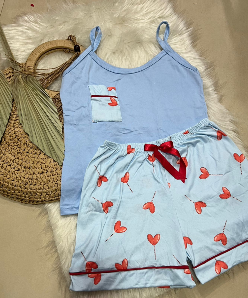 PIJAMA DE SUED ESTAMPADO ALÇA 00698 AZUL BRANCO CASAL