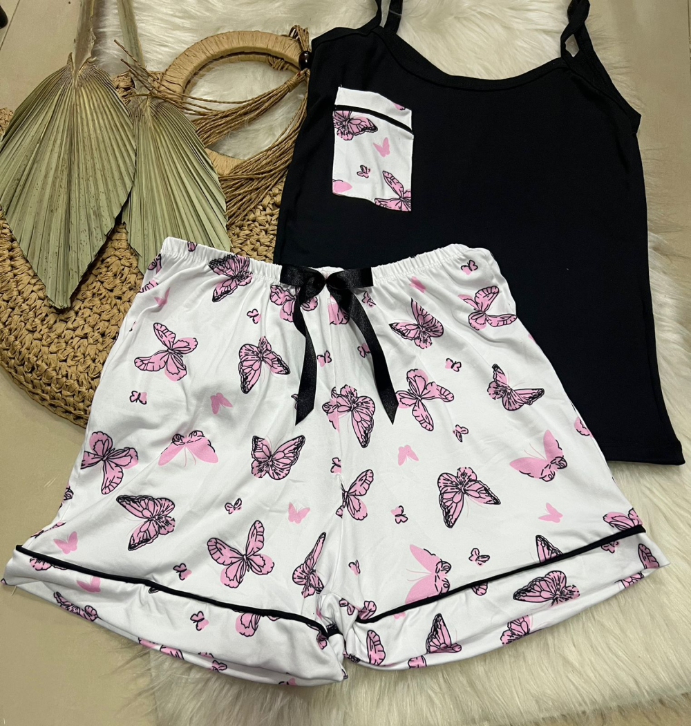 PIJAMA DE SUED ESTAMPADO ALÇA 00698 BORBOLETA BRANCO