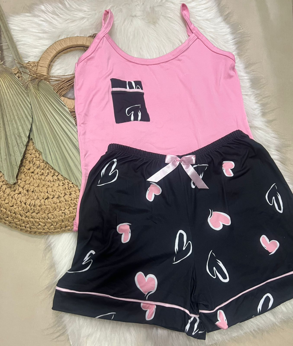 PIJAMA DE SUED ESTAMPADO ALÇA 00698 PRETO CORACAO