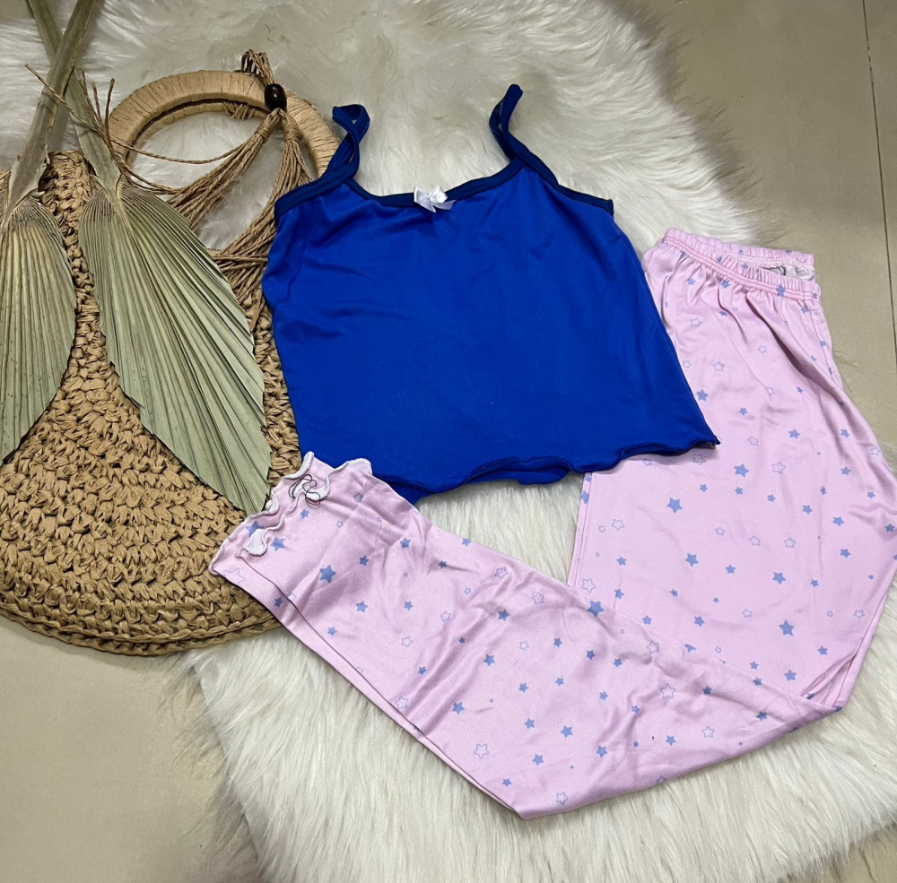 PIJAMA INFANTIL CALCA 000685 ROSA AZUL ESTRELA