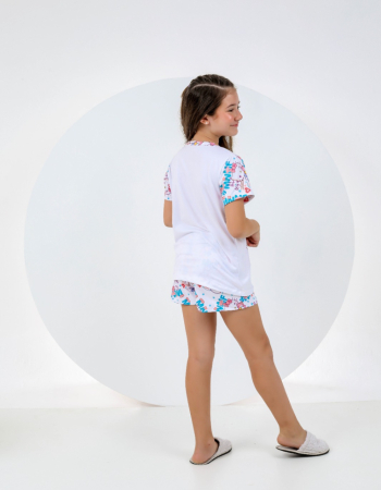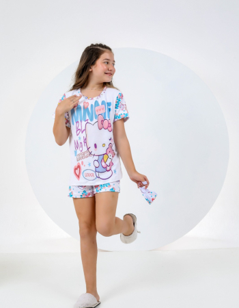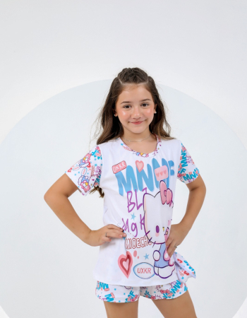 PIJAMA INFANTIL MENINA MANGA SUED 000704 BRANCO AZUL CAT