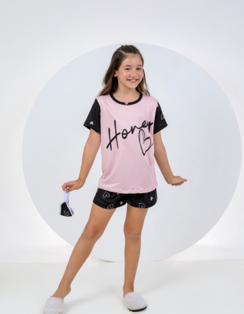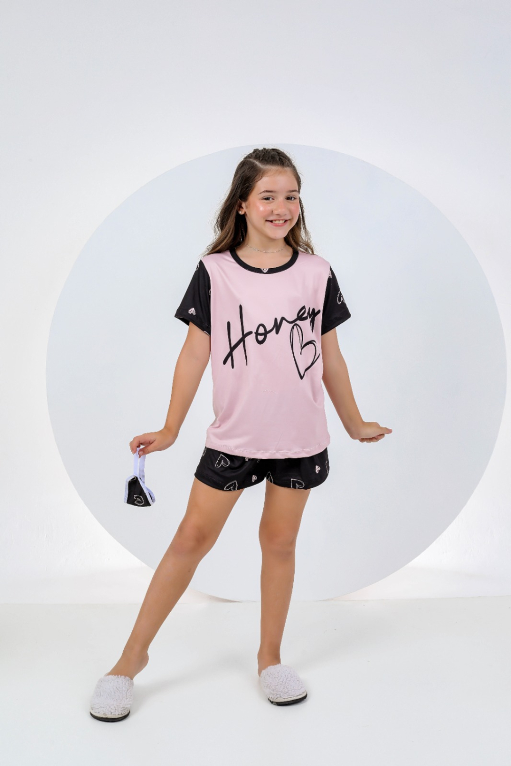 PIJAMA INFANTIL MENINA MANGA SUED 000704 LOVE